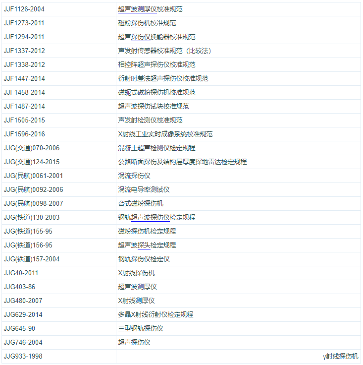 無(wú)損檢測(cè)儀器、設(shè)備和器材相關(guān)計(jì)量檢定規(guī)程和校準(zhǔn)規(guī)范目錄大全